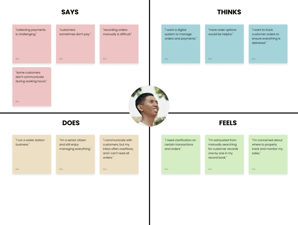 Interviews with seven water station owners revealed that their primary concern is payment processes. Buyers often fail to pay promptly due to the lack of online payment options and delays in product delivery. Many owners expressed a need to monitor and manage payments more efficiently; however, the absence of proper technology makes it challenging to track expenses and follow up with buyers individually.