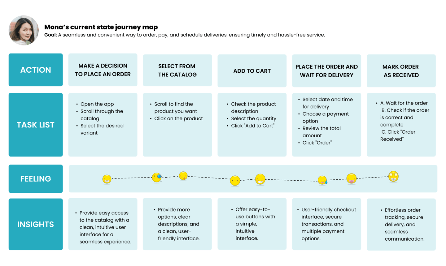 I conducted usability testing sessions with primary users to validate whether the new designs effectively addressed their problems. To guide the sessions, I created different tasks for users to order their desired water containers and type using the low-fidelity prototype.