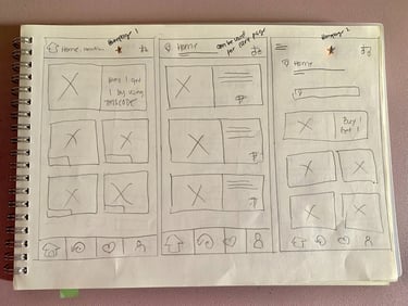 Some of these ideas were inspired by the "Crazy Eights" technique, allowing me to explore different layouts and concepts quickly. Below are a few of my paper wireframes showcasing the results.
