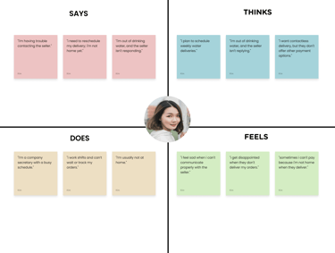 Carlo, a water station owner, needs a platform to streamline ordering, payment, and delivery scheduling to improve customer experience. Mona, a busy company secretary, needs an easy way to order, pay, and schedule water deliveries without waiting or disrupting her routine. Both require a simple platform that makes the process more efficient for businesses and customers.